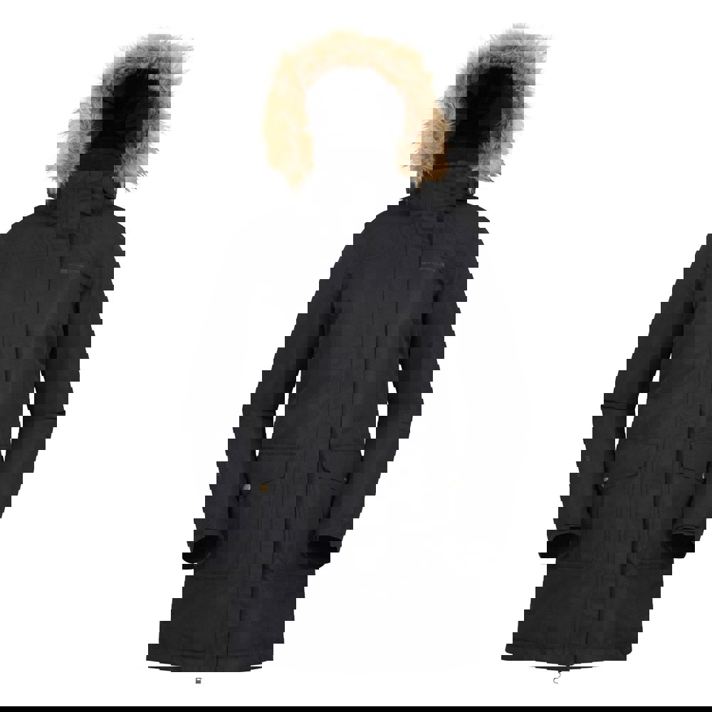 A full zip fastening sits under a stormflap, and taped seams are included. The jacket is waterproof with a 5000mm rating and uses breathable and insulating fabric technology, with a breathability rating of 3000g/m²/24hrs. Two side pockets with flap closures complete the outer.