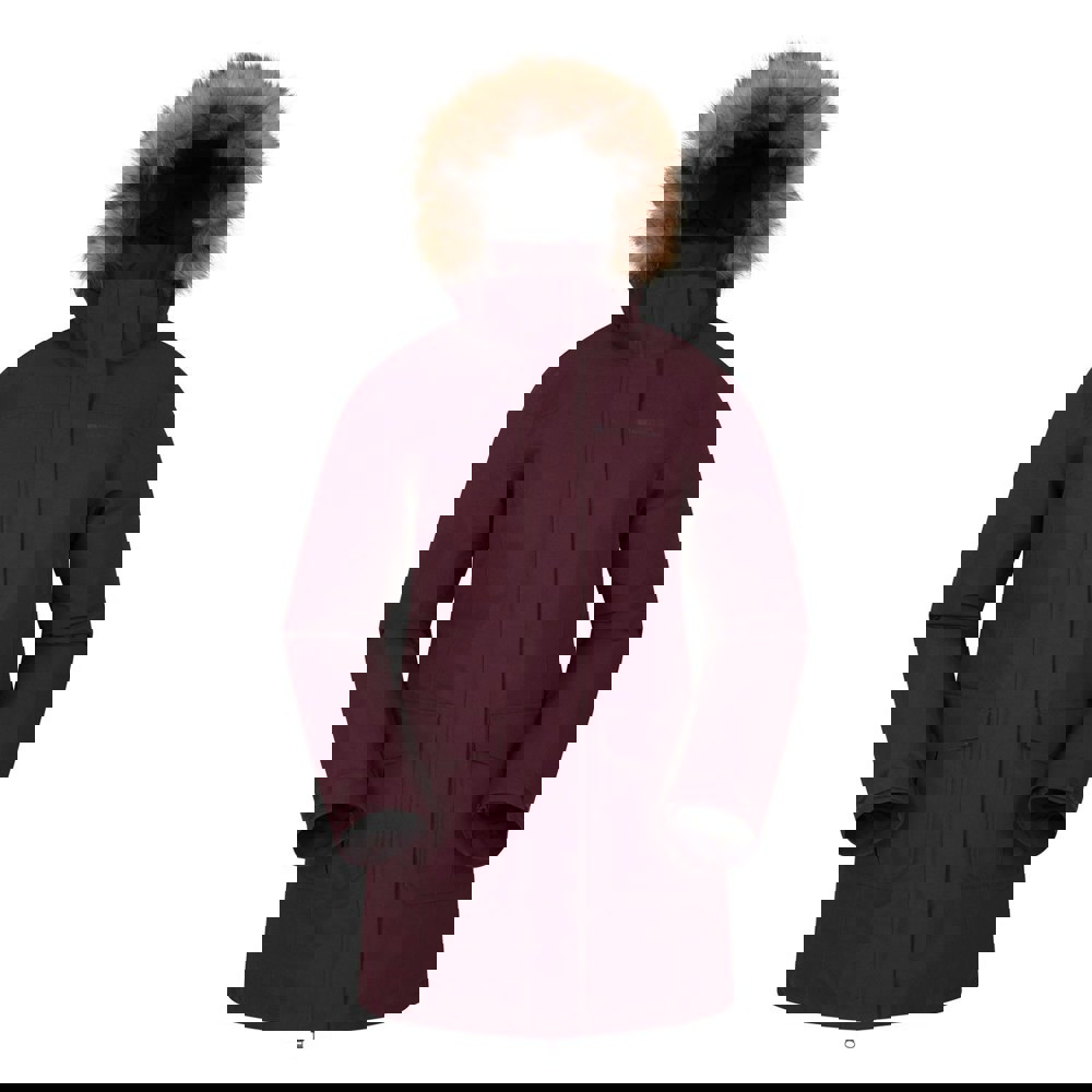 This long padded jacket is made from microfibre with a fleece lining and a hooded neckline. It has long sleeves with adjustable cuffs finished with touch fastening tabs. A detachable hood with faux fur trim adds versatility, while taped seams and a stormflap sit over the full zip fastening.