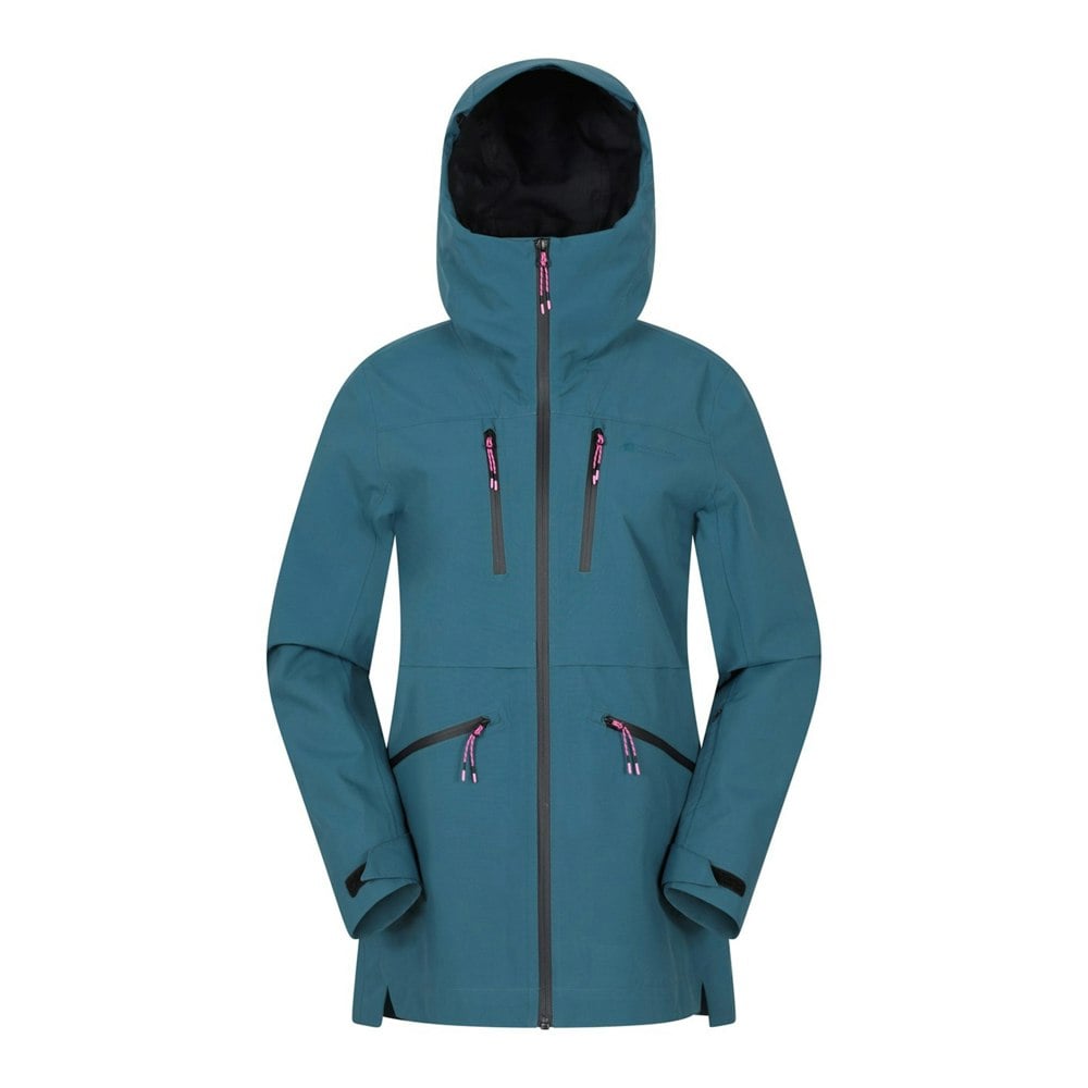 This women’s Tempest ski jacket from Mountain Warehouse is made from 100% polyester and built with a 3 layer membrane and taped seams. It is waterproof and breathable, with a waterproof rating of 10000mm and breathability of 5000g/m²/24hrs. The fabric technology is PFC free.
