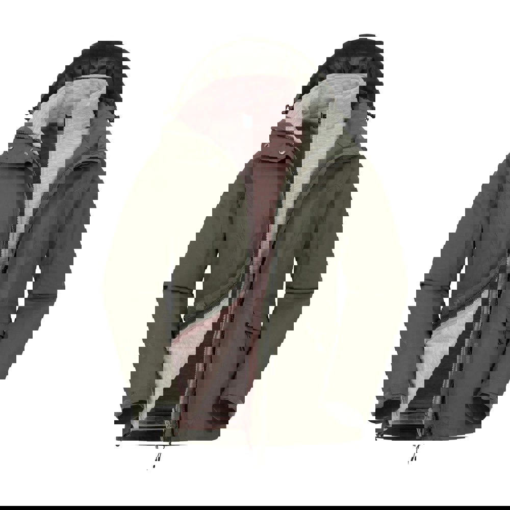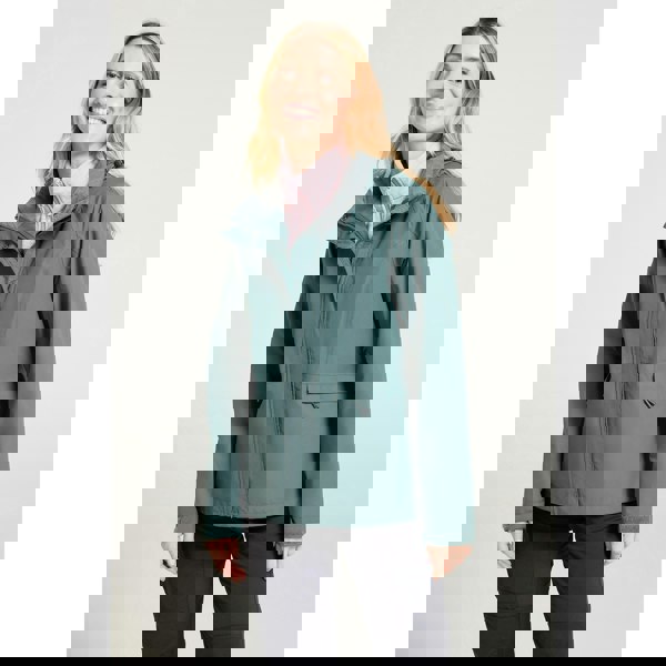 Practical details include two front pockets with zip and flap closure, plus a full zip front with stormflap, stud and hook and loop fasteners. A toggle hem allows adjustment. The fabric technology is breathable, lightweight and waterproof, with a 2000mm waterproof rating and 2000g/m²/24hrs breathability.