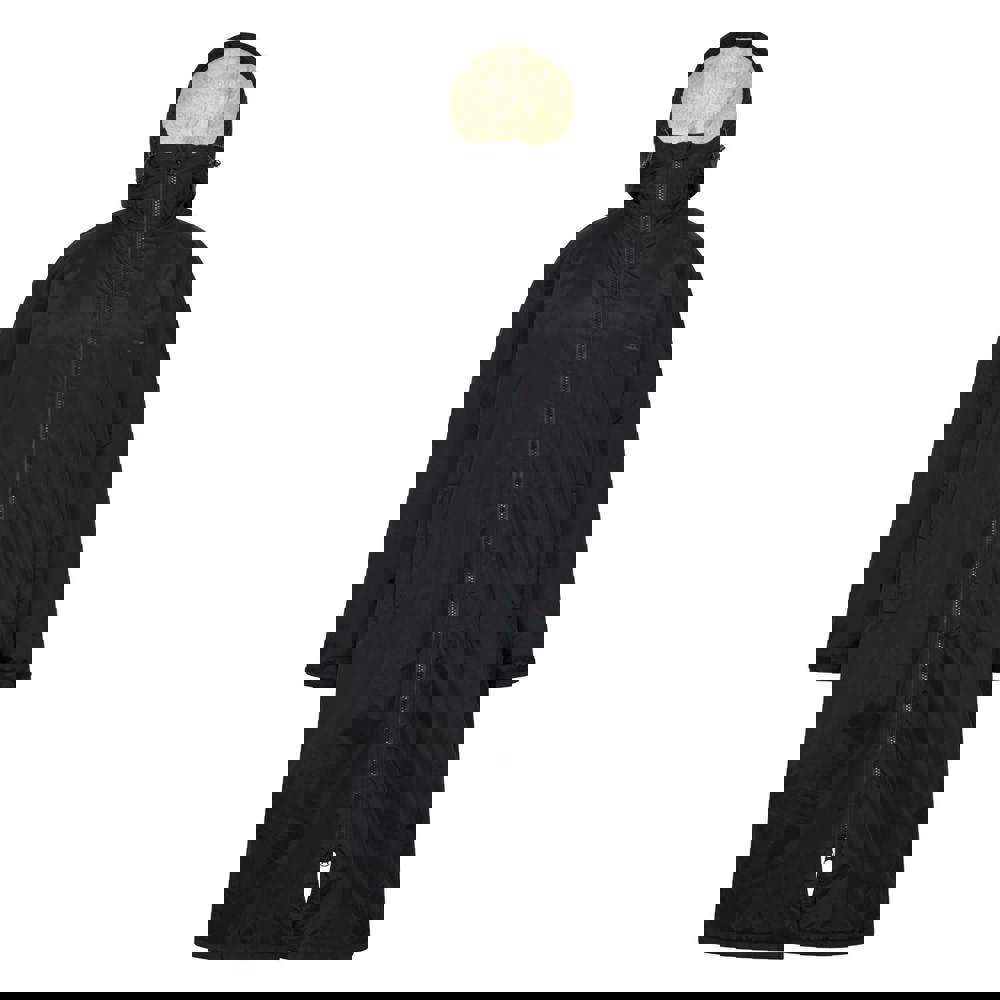 Finished in black, this changing robe includes a full zip fastening for easy on and off, plus a grown-on hood with a toggle adjuster for a more secure fit. Taped seams and a 3000mm waterproof rating add further protection from the elements, while side slits support easier movement. Two side pockets provide convenient storage, and the borg, fleece and polyester lining offers added comfort. Design details include a back print with logo, stamp and text styling.