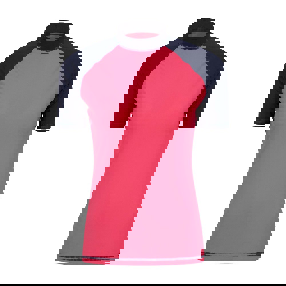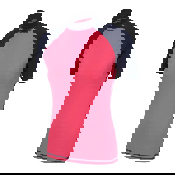 This women’s rash guard from Mountain Warehouse is made from 82% nylon and 18% elastane, with a slim fit and a contrast design. Lightweight and stretchy, it is built for active wear and includes quick-dry fabric technology.