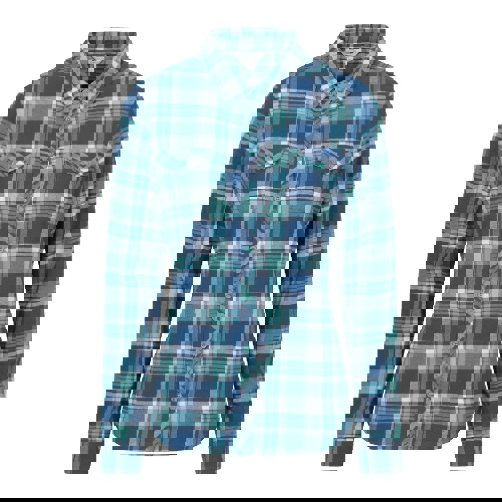 This women’s Willow flannel shirt from Mountain Warehouse comes in blue with a checkbox design. Made from brushed, lightweight flannel, it has a collared neckline and long sleeves for easy everyday wear. A soft-touch lining adds an extra layer of comfort, while the button-down fastening and buttoned cuffs keep the finish neat and classic. Two chest pockets complete the practical look.