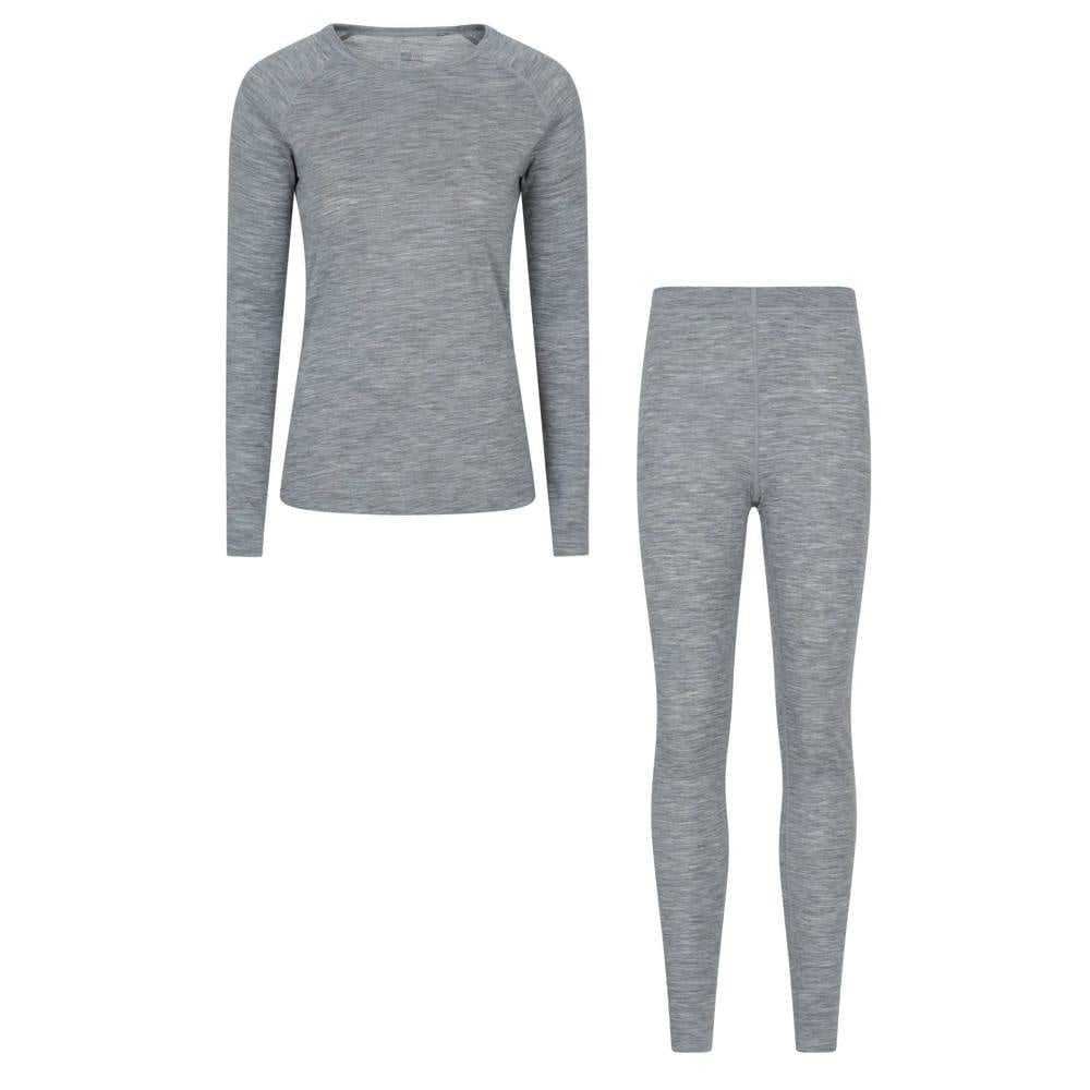 This women’s merino wool base layer set comes as a two-piece outfit with one top and one pair of bottoms. Made from an 80% merino wool and 20% polyester blend, it has a plain finish and a 180gsm fabric weight.