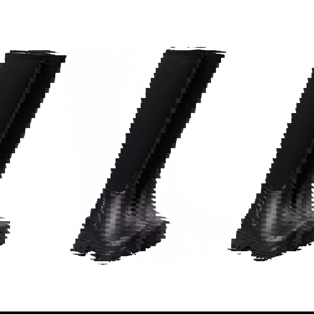 These calf-length neoprene boots combine a plain finish with a practical pull-on fastening for easy wear. A round toe and flat heel keep the shape simple and streamlined, making them suitable for everyday use.