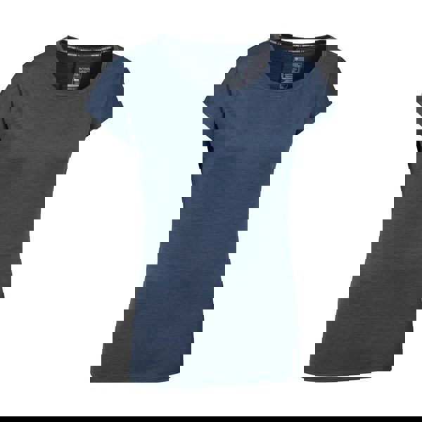 This plain navy T-shirt has a round neckline and short sleeves, finished in a relaxed fit for easy everyday wear. It uses IsoCool fabric technology with breathable, moisture wicking and quick dry properties, alongside added stretch for comfort.