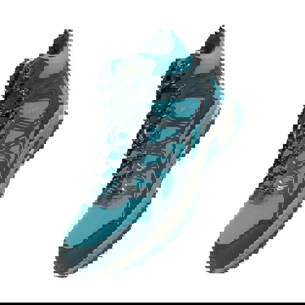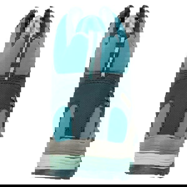 These Shadow softshell walking boots from Mountain Warehouse come in teal with a mid cut profile and a round toe. The upper combines synthetic and textile panels, finished with contrast detailing and logo and text design elements. A mesh lining sits inside for added comfort, while the moulded EVA midsole is cushioned for underfoot support.