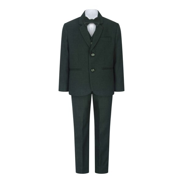 A stunning handmade premium tweed style fabric suit. The suit comprises of deep emerald green trousers, with an elasticated waistband for easy wear and side pockets. Paired with the deep green lined jacket. This set features a 100% cotton crisp white shirt, and a bow tie to finish. There options of a matching Phillip waistcoat in the emerald green or you also have the added variation of the Terence herringbone pattern waistcoat in the contrasting tan tweed fabric. Both with front pockets, button closure and an adjustable rear clasp to give the suit a classic yet modern finish.