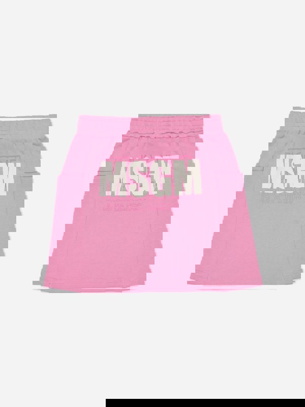 This MSGM girls skirt comes in pink with a prominent MSGM logo. A seasonal piece for SS2025, it adds a bold branded look to a child’s wardrobe.