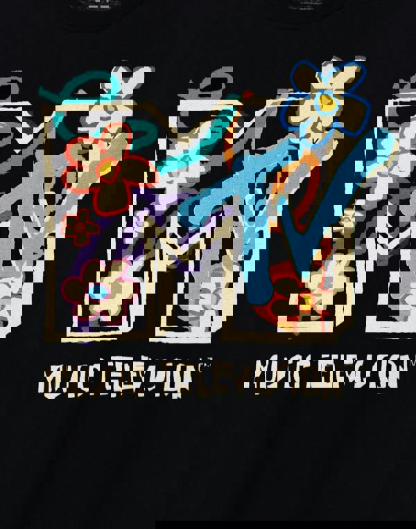 Elevate your wardrobe with the MTV Flowers Women's Black Tee, a harmonious blend of iconic nostalgia and contemporary elegance