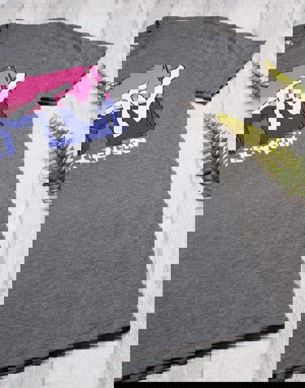 The stylish grey Music Television top for ladies is perfect for your everyday wardrobe, jumping around to your favorite music and for relaxing while watching binge-worthy reality TV shows