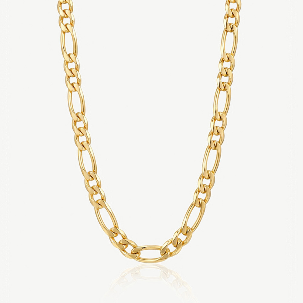• Length: 45cm • 3mm Figaro link chain • Metal: 18k solid gold plated stainless steel • Waterproof & tarnish-resistant • Hypoallergenic