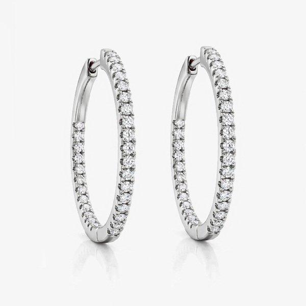 - Metal: Choose from 18k solid gold or white gold plated 925 sterling silver - Stones: White cubic zirconia - Hoop size: approx. 2.3cm diameter - Hoop thickness: approx. 1.5mm- Hypoallergenic, durable, water-safe