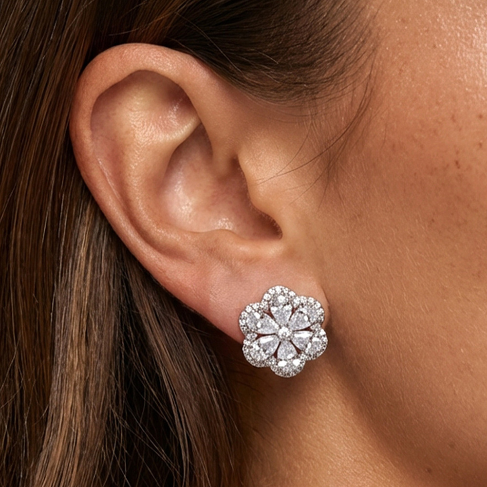 - Metal: 925 sterling silver - Stones: Cubic zirconia - Style: Push-back studs - Size: approx. 1.5cm- Lightweight, hypoallergenic, water-safe, comfortable for all-day wear