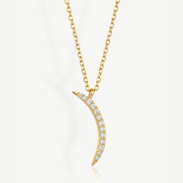 Set with subtle cubic zirconia stones, the crescent catches the light softly, adding just enough sparkle to elevate simple outfits without ever feeling too dressy. Easy with T-shirts, knitwear, blazers, or evening looks — it’s that effortless everyday piece you’ll keep reaching for.