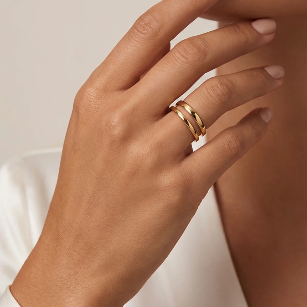 Easy with everyday outfits, knitwear, blazers, denim, office looks, dinners, or nights out. Wear it solo as a statement or mix it into your ring stack for extra texture. Made from durable stainless steel with 18k solid gold plating, it’s waterproof, tarnish-resistant and hypoallergenic — so you can wear it daily without worrying about fading or green marks.