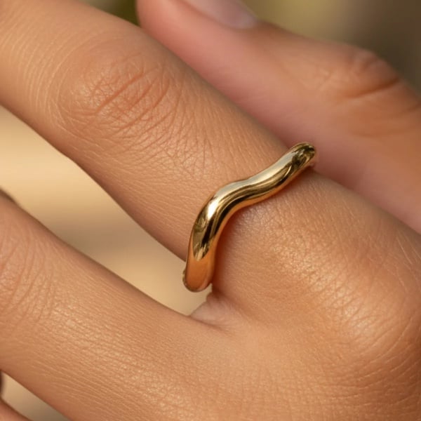 This open wave ring features a smooth flowing curve that wraps softly around your finger.