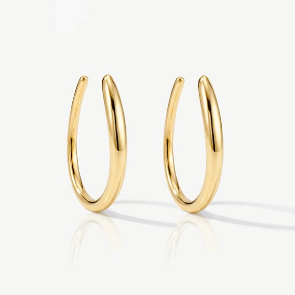 - Metal: 18k Solid Gold plated 925 Sterling Silver - Style: Oval threader hoops- Size: One Size Fits All- Lightweight, waterproof, tarnish-resistant, hypoallergenic, comfortable for daily wear