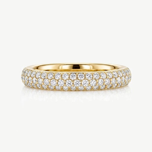 This sparkling eternity band is fully covered in tiny pavé cubic zirconia - sparkling from every angle without you even trying.Chunky but smooth, it feels comfortable on the finger and never too bulky.