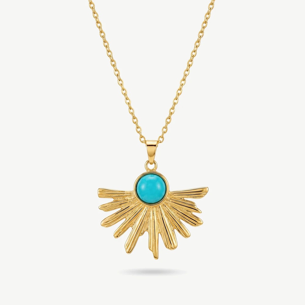 This turquoise sunburst necklace is a small reminder of your inner light — strength, clarit, and fresh starts. The radiant sun pendant symbolises energy and confidence, while the vibrant turquoise centre adds a calm, grounding pop of colour.