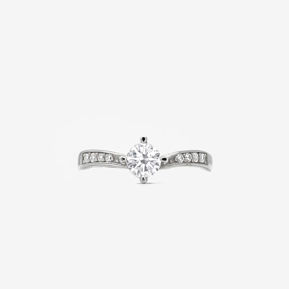 This dainty V-shaped ring adds just the right amount of sparkle with a round cubic zirconia stone set into a sleek sterling silver band. Its curved chevron silhouette makes it perfect for stacking with other rings or wearing alone as a statement piece