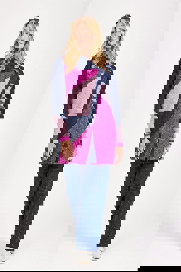 Complete your wardrobe with our Colour Block Coatigan, a versatile piece perfect for layering as the seasons change. Our cosy coatigan is designed with a bold colour block pattern in rich colours, an asymmetric closure finished with button details creating a chic tailored finish.