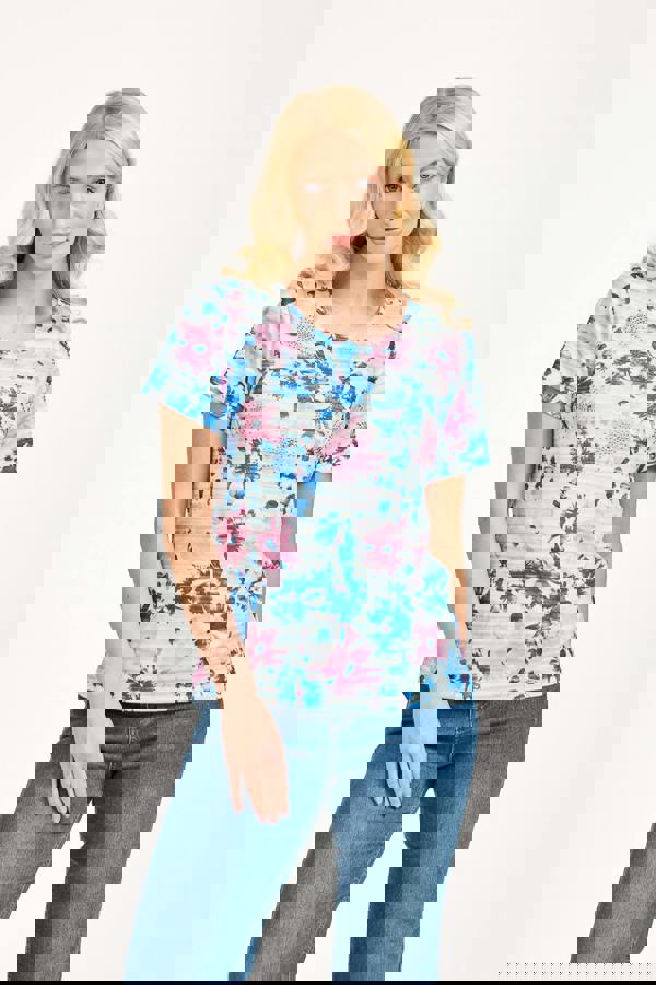 Add our Floral Stripe Print Embellished Top to your spring-summer wardrobe. Its mix of embellished florals and stripes is sure to add a touch of elegance to your look. It is designed with a soft, lightweight and breathable fabric finished with a round neckline and a straight hem, made to offer you comfort whilst looking stylish.