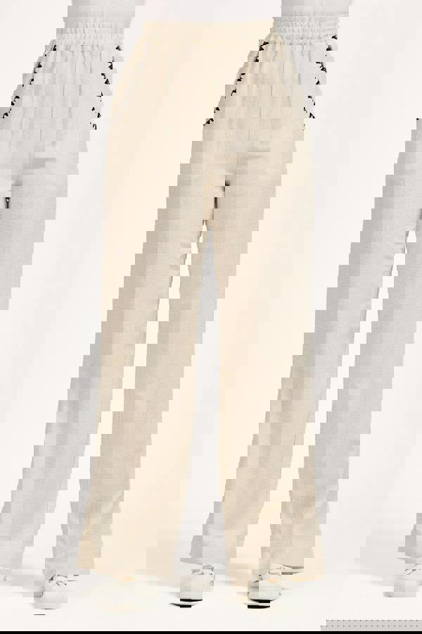 Our Linen Blend Blanket Stitch Wide Leg Trousers offer casual sophistication. The wide-leg silhouette and lightweight fabric make them an ideal choice for daytime events and family gatherings. The blanket stitch contrast detailing along the pockets give them the extra touch of elegance and the elasticated waistband is designed to provide exceptional comfort.