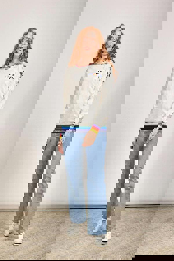 The rainbow design adds a pop of colour and a touch of positivity to the jumper. Made from high-quality and soft yarn, this jumper provides a cosy and warm feel against your skin. The lightweight material offers excellent insulation, making it suitable for cooler days or when you want to feel snug and stylish.