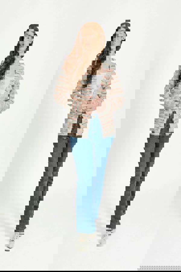 Brighten up your spring–summer wardrobe with this Space Dye Stripe Open-Front Knit Cardigan. Crafted from a soft, lightweight knit, it offers effortless comfort and breathability, perfect for layering on breezy days or cool evenings. The space-dye yarn creates a beautiful blend of colours, while the subtle stripe pattern adds a modern, textured look. A versatile layer that brings a fresh pop of colour and charm to any outfit.