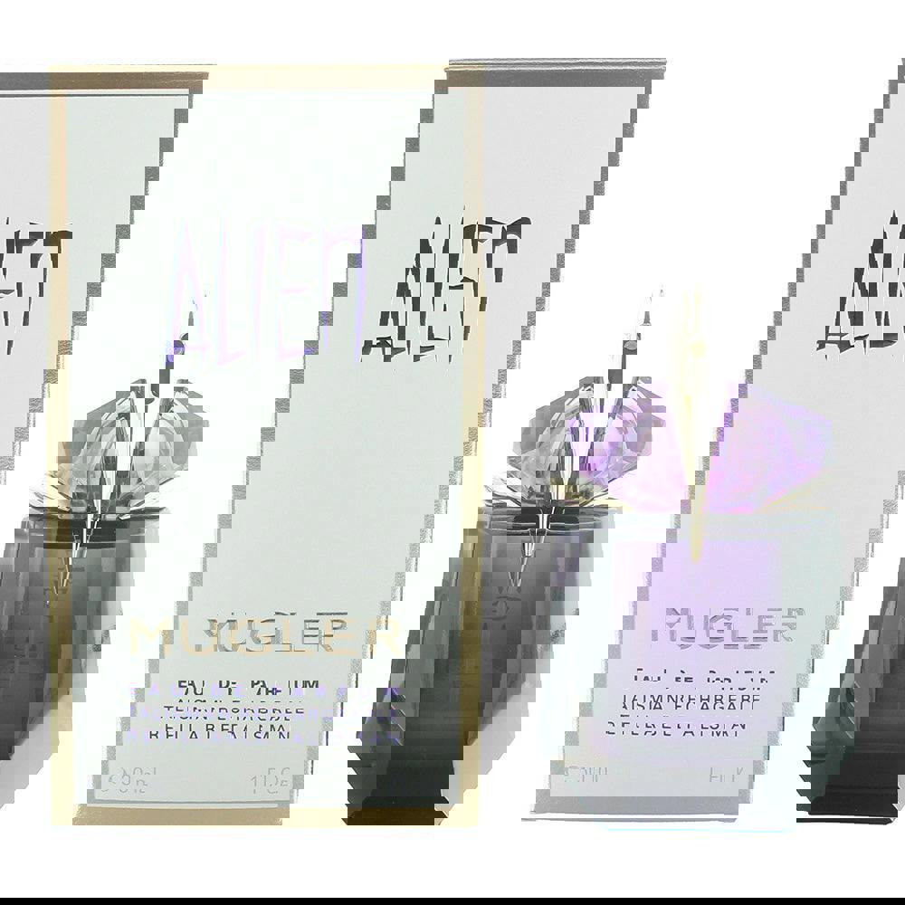 Mugler Alien Refillable Eau de Parfum is a distinctive women’s fragrance built around a radiant, floral-amber signature. Known for its bold, luminous character, it centres on jasmine for a rich, white-floral impression, balanced by warm amber and smooth woody notes for depth.