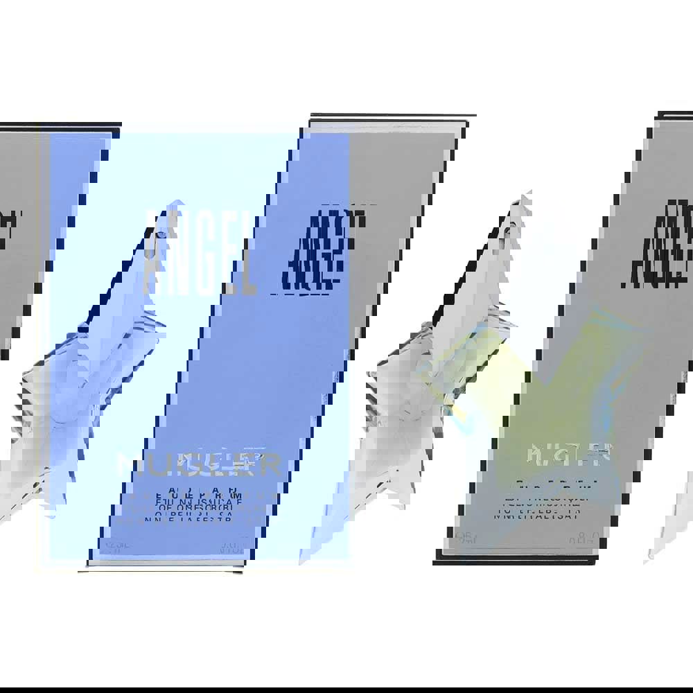Mugler Angel Eau de Parfum is a bold, distinctive gourmand fragrance, known for its sweet, sensual character and unmistakable presence. This non-refillable 25ml format is ideal for keeping in a handbag or travel case, offering the signature Angel scent in a compact size.