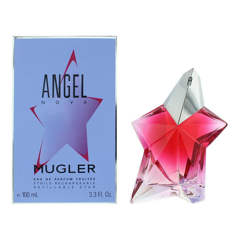 Mugler Angel Nova is a refillable eau de parfum that brings a modern, fruity-floral character to the Angel collection. The scent opens with a vivid burst of raspberry, leading into a rose heart that adds a fresh, petal-like softness. In the base, Akigalawood lends a warm, woody finish with a subtle spicy edge, creating a confident signature that feels both bright and grounded.