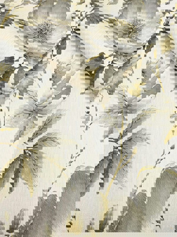 Featuring large, hand-drawn botanical blooms in soft cream tones with subtle gold and grey detailing, this wallpaper adds a touch of luxury and sophistication to any room