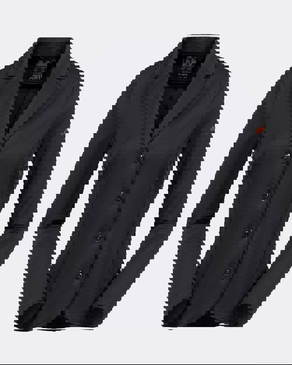 Our Prestige WINDSTOPPER® ActiveSeam™ Show Jacket comes in a modern show jumping silhouette with technical performance. The WINDSTOPPER® membrane effectively blocks wind chill to keep you comfortable in the saddle. ActiveSeam™ technology is comfortable against the skin and allows for extra stretch for unhindered movement while riding. A Durable Water Repellent (DWR) coating causes water to bead and run off the surface of the fabric, helping the jacket to dry out quickly. Serious competition apparel for serious riders.