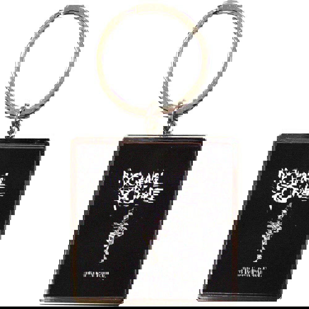 Official licensed My Chemical Romance Keychain featuring the 'The Black Parade Album Cover' design motif. High quality Metal die-cast Keychain featuring photo print motif. With integral key hoop.