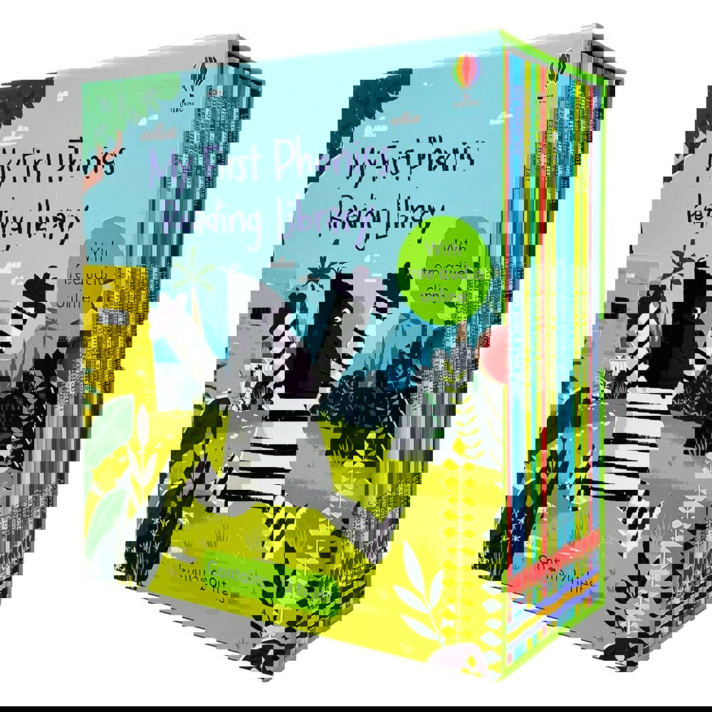 Usborne My First Phonics Reading Library is a 20-book collection of phonics readers, presented as a boxed set and supplied with free audio online. The stories use lively rhyme and playful scenarios, with animal characters at the centre of each tale.