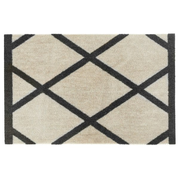 My Mat Nylon Border Geo has a black geometric design on a cream background, with a black border on only the 2 short edges