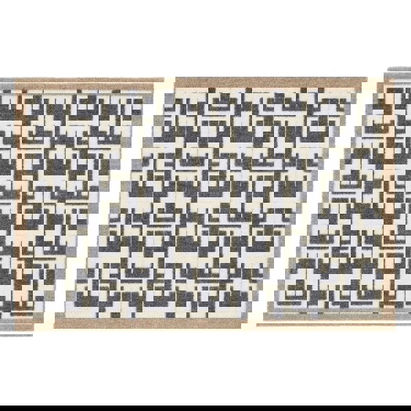 My Form Geo features geometric shapes interlocking in grey and white with a beige border