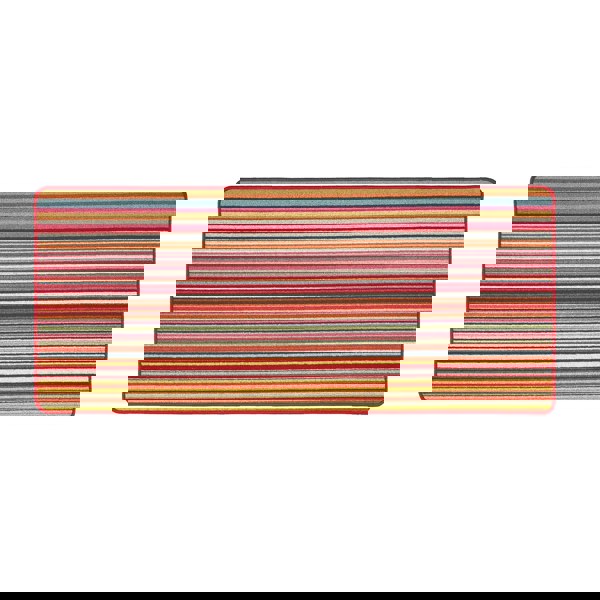 The Candy Multi Bright design features an array of striped colours in warm tones of reds, pinks, oranges and yellows across the length with a taped edge
