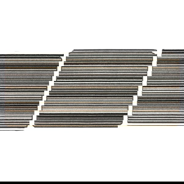 The Candy Multi Mono design features an array of coloured vertical stripes including browns, greys, whites and beiges along with a taped edge