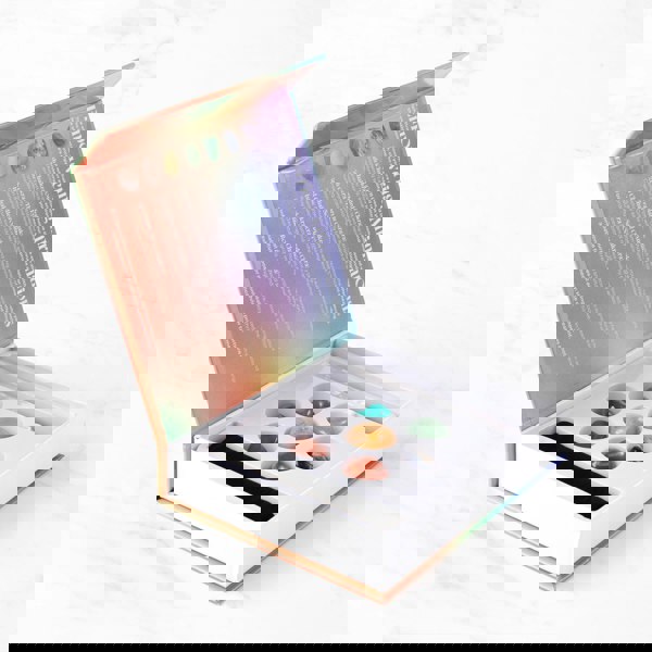 Discover the power of energy centres with our Chakra Stones Gift Set. In Sanskrit, "chakra" means "wheel" or "circle," reflecting the essential energy hubs within your body. This set features stones precisely attuned to each of the seven chakras, aiding your pursuit of balance and vitality. Each stone in this collection is chosen for its unique ability to resonate with specific chakras. Inside the box are empowering affirmations for each stone, enhancing your connection and promoting personal and spiritual growth.