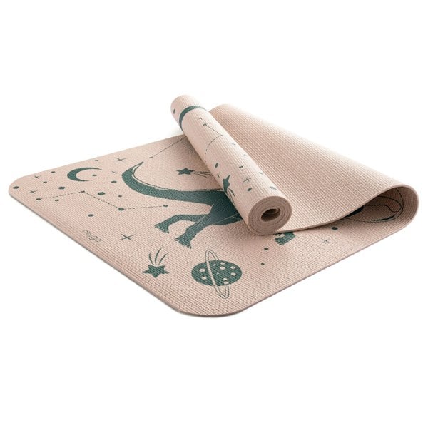 This unique mat features a vibrant array of yoga poses, providing a playful and educational backdrop that can inspire your child's practice.