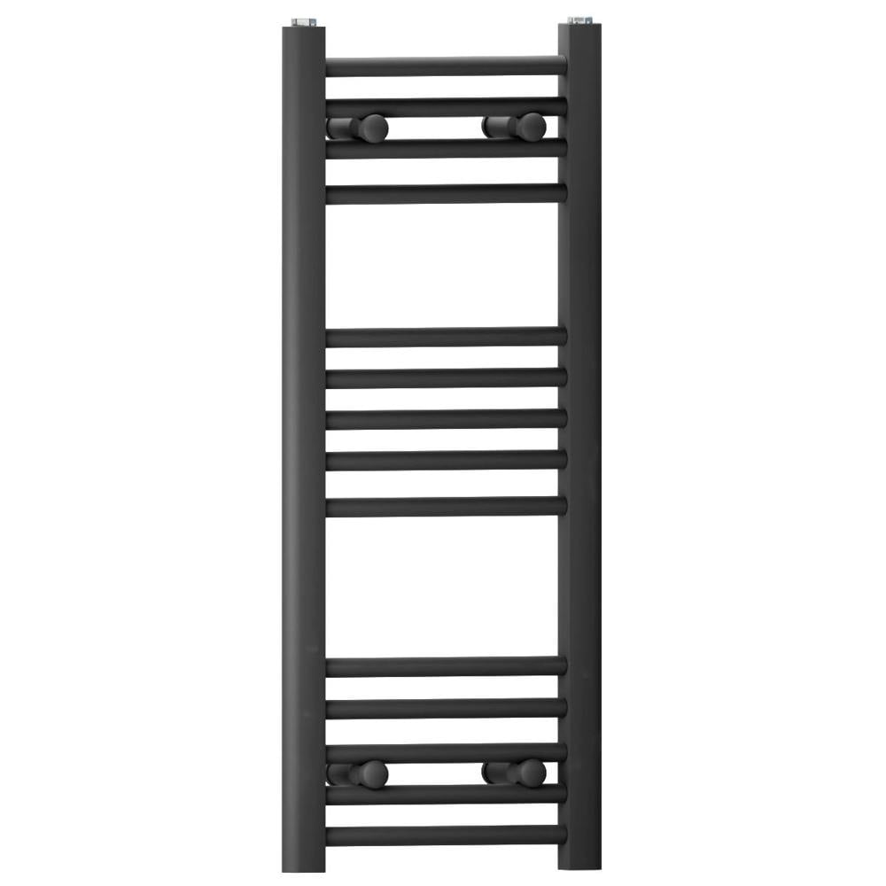 Black Towel Rail Radiator for Central Heating. If additional accessories are purchased, can be used as electric or dual fuel. Comes in smooth matt black finish.