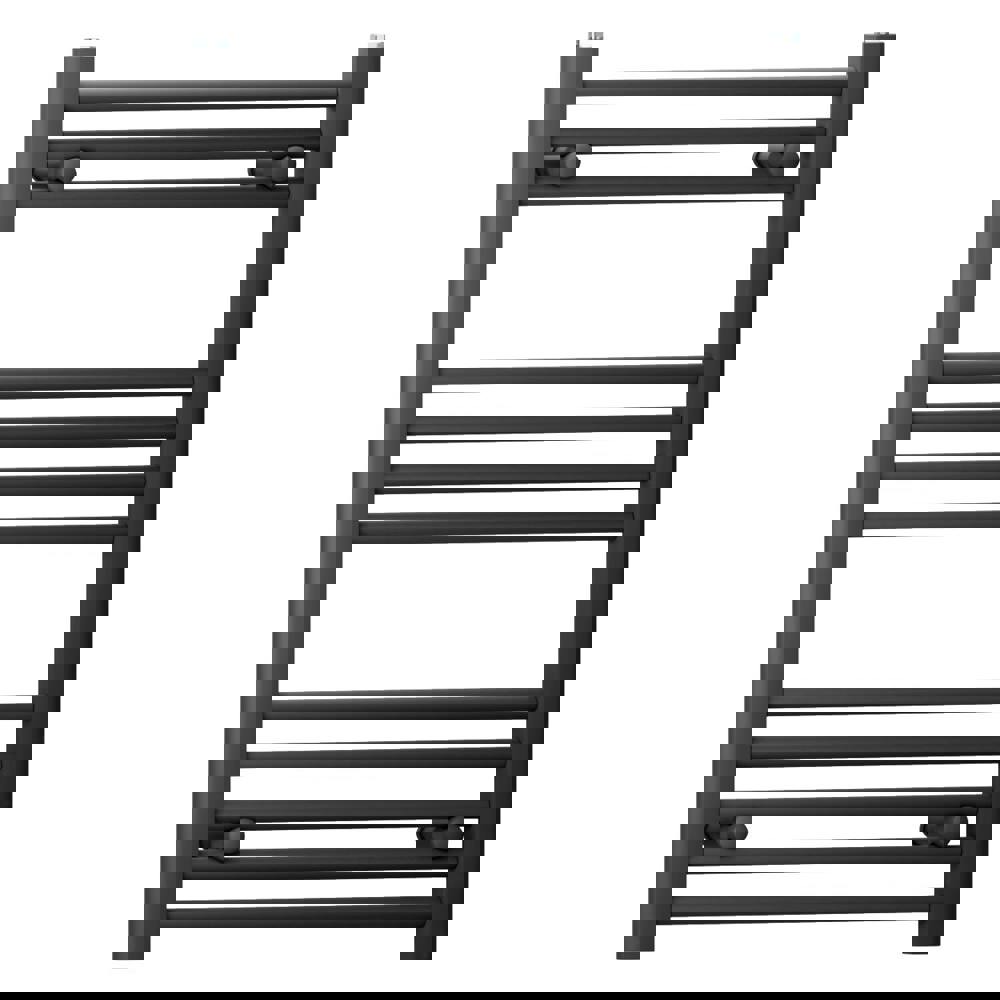 Black Towel Rail Radiator for Central Heating. If additional accessories are purchased, can be used as electric or dual fuel. Comes in smooth matt black finish.