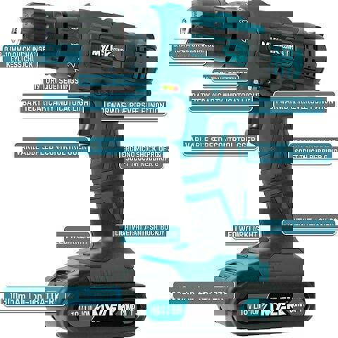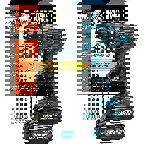 From Mylek, this blue 18V Cordless Drill Driver Set is designed for drilling and screwdriver action, with flexible control for everyday DIY tasks. A variable speed trigger and forward/reverse switch make it easy to move between drilling, driving and removing screws, while the LED work light helps when working in hard-to-see areas. An LED battery life indicator keeps you informed when it is time to recharge.