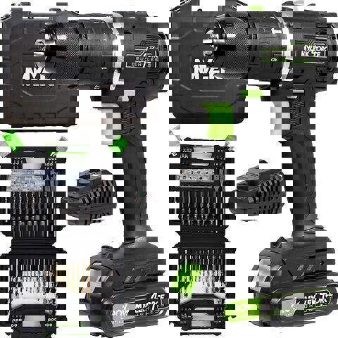 From Mylek, the 4ORCE 20V Lithium-Ion Cordless 2 Gear Hammer Drill Set is designed for drilling and hammer action tasks, with a brushless motor for energy-efficient performance. A variable speed trigger and forward/reverse switch help you stay in control, while the LED work light supports working in low-light areas.
