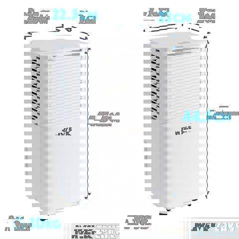 Keeping humidity in check is simple with the Mylek 12L Dehumidifier, a refrigeration dehumidifier with a digital display and colour-changing humidity sensor. It extracts up to 12 litres per day and uses indicator lights to show current room humidity at a glance: blue for less than 45%, green for 45–65%, and red for greater than 65%.