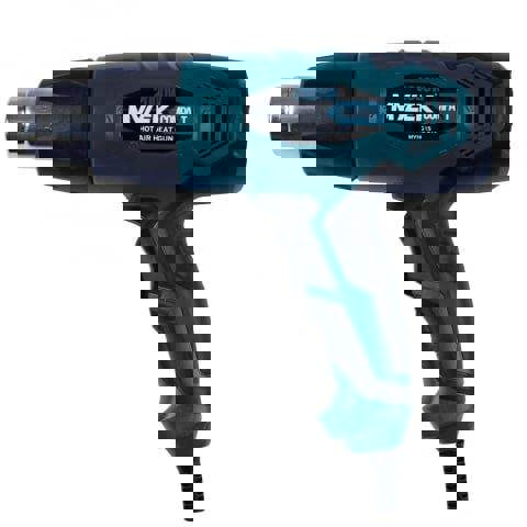 For added practicality during longer jobs, the ergonomic lightweight design features a comfortable grip intended to minimise user fatigue. A built-in base metal stand supports hands-free use when set, while the removable nozzle guard and overload protector components are designed to support safer operation. Supplied with a 1.5m cable and BS plug.