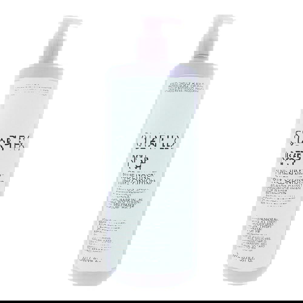 Olaplex N°5P Blonde Enhancer Toning Conditioner 1000ml is a salon-size purple conditioner that neutralises brassy yellow tones while nourishing blonde, grey and highlighted hair. Powered by Olaplex’s patented bond-building technology, the highly pigmented formula strengthens, smooths and restores moisture without weighing hair down.